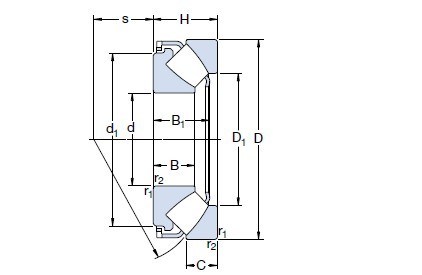 The 29413E Spherical roller thrust bearing  can carry combined loads which is main in axial and axial loads in one direction. Their loading capacity and limiting speed are high, and they can align by themselves when the precision of shafts or housings is not high or there is installation error.
